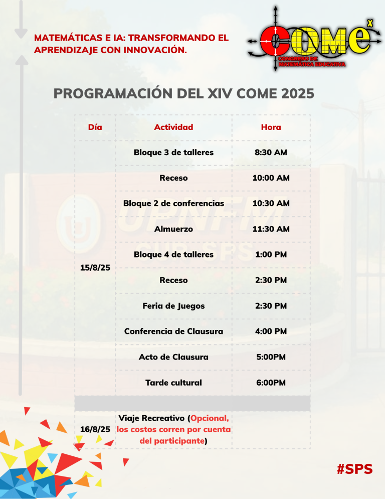 Desde San Pedro Sula, les damos a todos los docentes de Honduras la más cordial bienvenida por participar en la edición XIV del COME cuyo eslogan es MATEMÁTICAS E IA: TRANSFORMANDO LA EDUCACIÓN CON INNOVACIÓN.